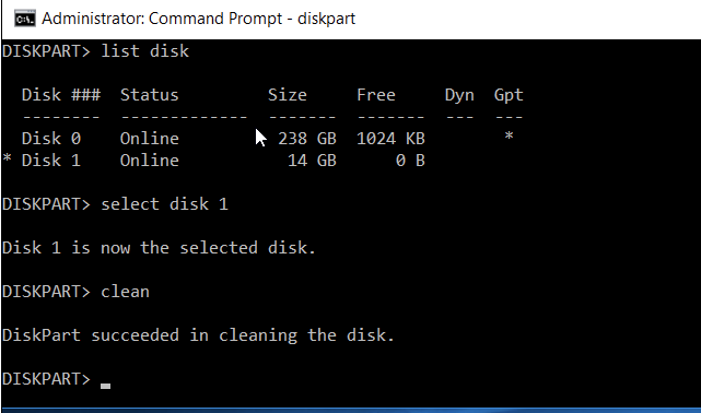 Clean the Drive Launch command prompt in admin modeClick on the "start" button and type "cmd" without the ...